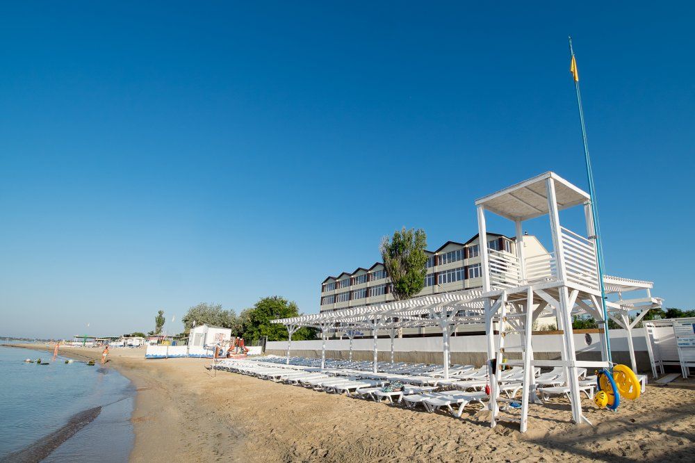 Преимущества: находится в 300 м от пляжа и в 5 минутах ходьбы от лечебно-грязевого озера «Мойнаки», Богатая инфраструктура для взрослых и детей, собственный закрытый песчаный пляж, Концепция "все включено", Питание "шведский стол", открытый бассейн с детским отделением, Медицинский центр. массажный кабинет.